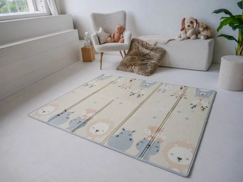 Určitě Vás ale také napadlo, jak doma uskladnit tak rozměrnou podložku v případě, že ji zrovna nebudete potřebovat? Je to snadné! Tento typ podložky se lehce složí podle záhybů na podložce a je tak nepostradatelným parťákem na cestování s děti.